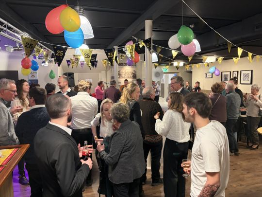 Dit seizoen is het vijfentwintig jaar geleden dat het gebouw in gebruik werd genomen. Met een feestelijke avond voor alle verenigingen, gebruikers, donateurs, sponsors en trouwe bezoekers werd dit gevierd. Na een feestelijke ontvangst met bubbels en zang van de Gesmeerde Kelen werd de avond geopend door wethouder Robert Leever die zijn waardering uitsprak voor alle vrijwilligers die dit prachtige gebouw draaiende houden, waarna hij het bestuur even in het zonnetje zette met een bos bloemen en een attentie. Bestuursleden Marjo Lont, Jacob Smit, Annemarie Veenstra en oud bestuurslid Nico Bakker ontvingen een bos bloemen en ‘blik (koek) van waardering’; Leo de Nooijer kon helaas niet aanwezig zijn.
