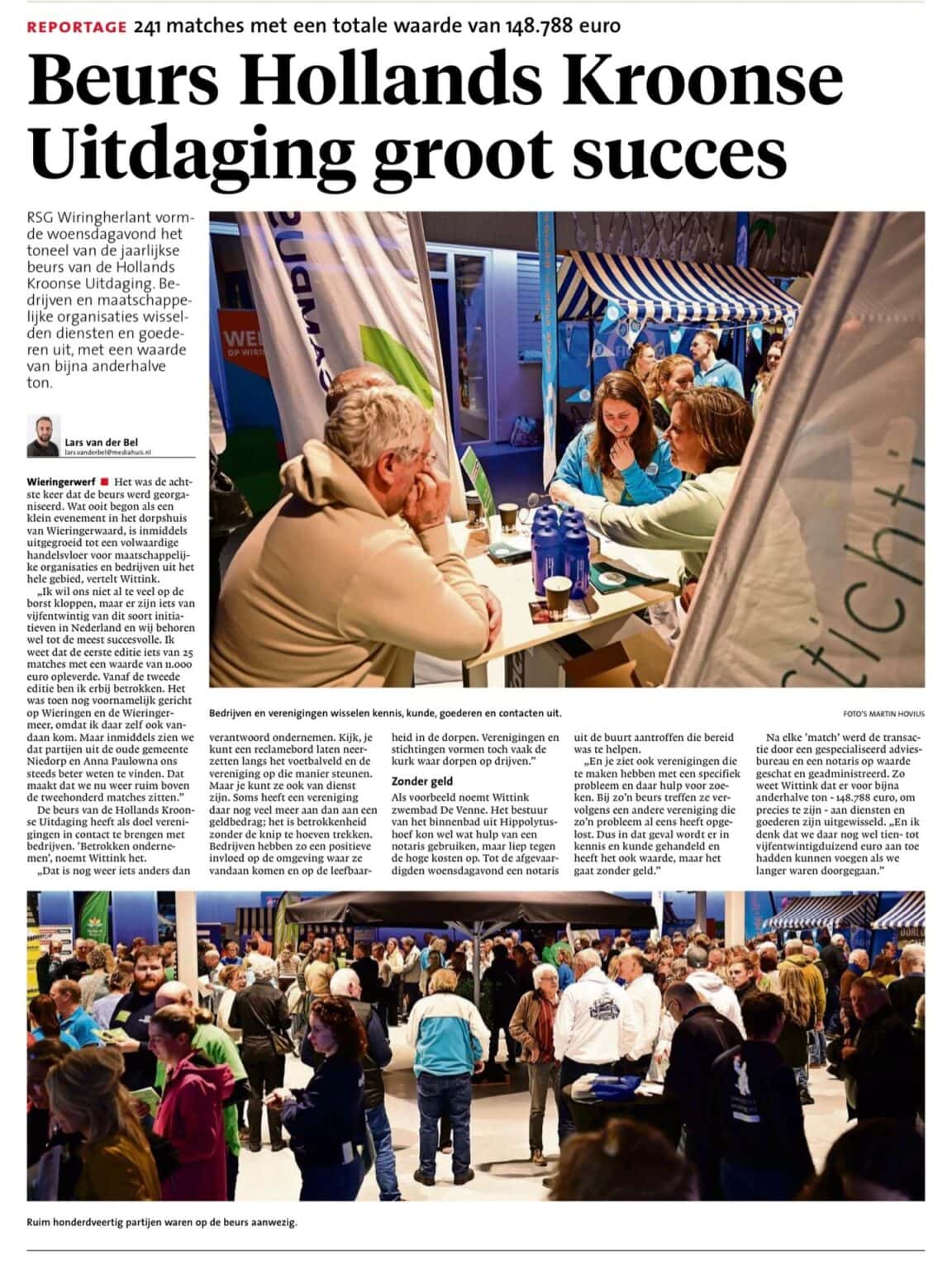 Paginagroot verslag van de Beursvloer Hollands Kroon door Lars van der Bel in de Schager Courant van het Noordhollands Dagblad.