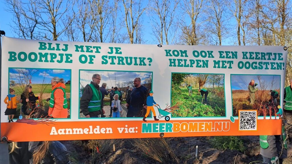 Voor deze actie maakte Viking Reclame uit Hippolytushoef een spandoek. Dit was een match met de organisatie van meerbomen.nu, gemaakt via de Hollands Kroonse Uitdaging.