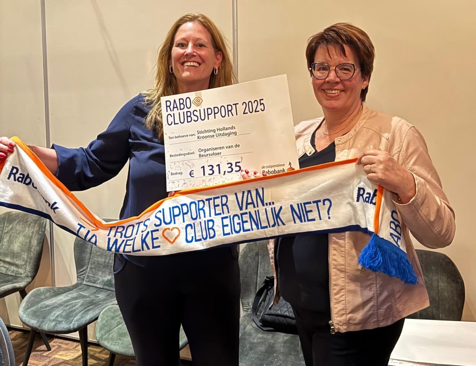 De Hollands Kroonse Uitdaging heeft ook meegedaan met Rabo ClubSupport. Onze voorzitter Sonja Berbee (links op de foto) ontving hiervoor van Romania Langelaan een symbolische cheque. De opbrengst zal worden gebruikt voor de kosten van de jaarlijkse Beursvloer Hollands Kroon. Ook in 2026 wordt deze beursvloer weer door de Uitdaging georganiseerd; op woensdag 11 maart in RSG Wiringherlant in Wieringerwerf.