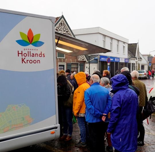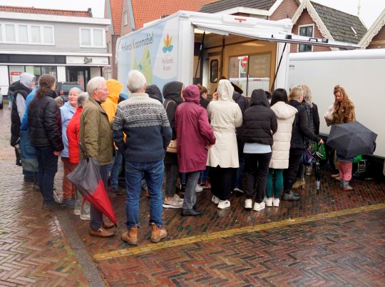 HIPPOLYTUSHOEF – Tijdens de Week van ons eten kunnen inwoners van Hollands Kroon op diverse plekken een gratis verspakket ophalen. Iedereen kan langsgaan bij één van de uitdeelpunten om een pakket met verse producten van lokale bodem mee te nemen. In Hippolytushoef was het daarom woensdagmiddag een drukte van belang. Voor vier uur stonden er al vele mensen op het Kerkplein te wachten op de Hollands Kroonmobiel van waaruit de pakketten werden uitgedeeld. Even na vieren werden de pakketten afgeleverd, die daarna in recordtempo werden uitgedeeld. Er waren maximaal 100 pakketten beschikbaar, onder het motto OP = OP.